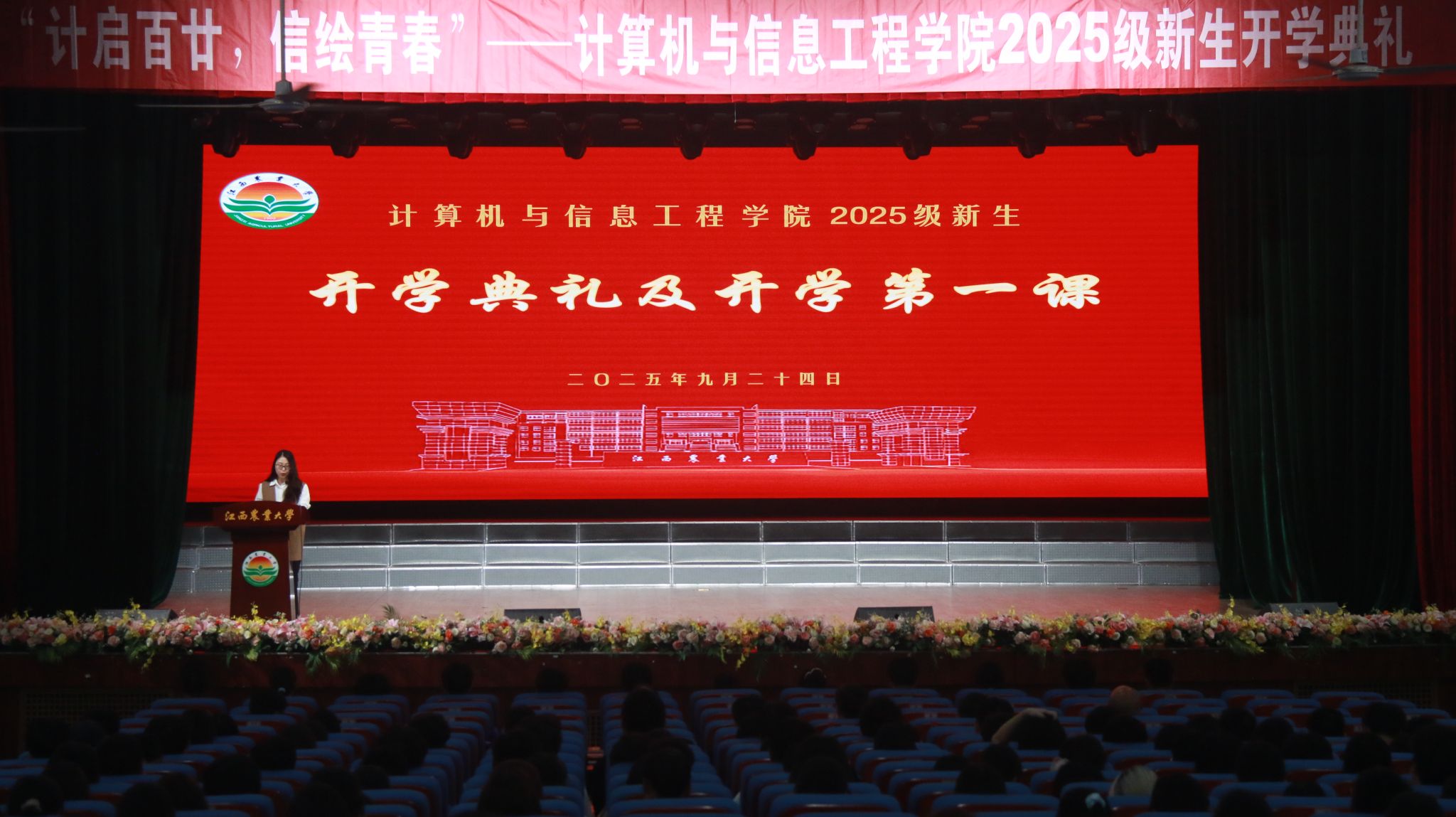 典礼最后,学院党委书记杨峰为新生上“开学第一课”。他讲到:各位新同学的到来,为江西农业大学这座跨越双甲子的高等学府,注入了崭新的青春活力!一百二十载风雨兼程,两个甲子的薪火相传,学校始终秉持“团结、勤奋、求实、创新”的校训精神,扎根红土,服务三农,为国家培养了一代又一代栋梁之才。希望同学们秉持校训精神,以“团结”为桨,聚力前行,紧密团结在党中央周围,坚定不移听党话跟党走;以“勤奋”为阶,夯基固本,珍惜大学时光,如饥似渴地勤奋学习;以“求实”为镜,格物致知,实事求是,脚踏实地,求得真学问,练就硬本领;以“创新”为帆,勇立潮头,紧紧把握以人工智能为核心的新一轮科技革命浪潮的时代脉搏,主动学习,探索未知,努力构建适应未来发展的多元化、复合型知识结构。祝愿同学们以数智赋能,砥砺强国之志,青春向党,不负人民,为建设网络强国、数字中国挺膺担当,书写绚丽的青春华章!